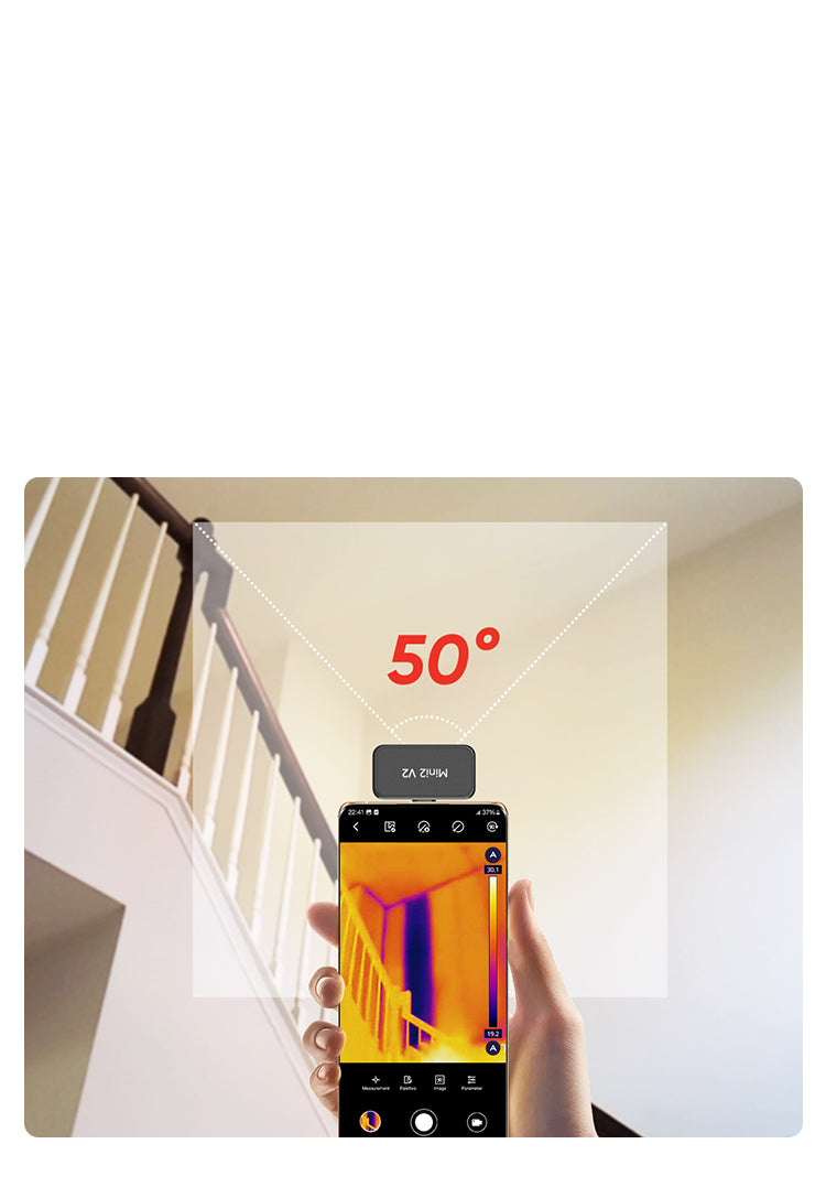 Mini2 V2は、住宅の検査やHVACのトラブルシューティングに最適です。高い熱分解能力、SuperIRによる画像補正、正確な温度測定により、危険箇所を簡単に特定し、十分な情報に基づいた判断を下すことがiOSとAndroidの両方のデバイスに対応しているため、外出先でのサーモグラフィ検査に最適です。家庭でもプロフェッショナルでも、Mini2 V2はさまざまな赤外線イメージング作業をサポートする多機能なスマートフォン用サーモグラフィです。
