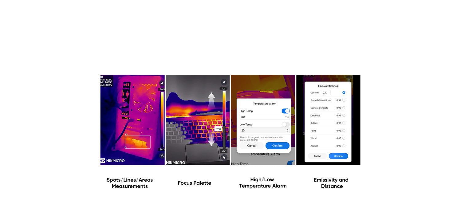 iOS/Android用HIKMICRO Viewerアプリ、Windows用HIKMICRO Analyzerソフトウェア |