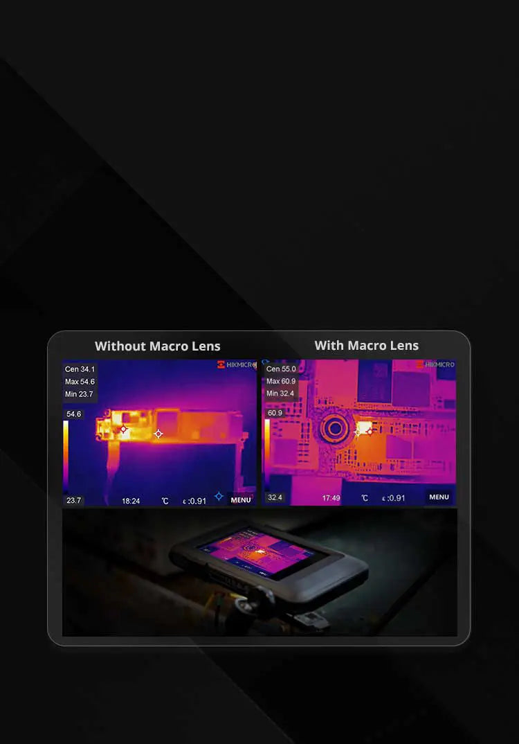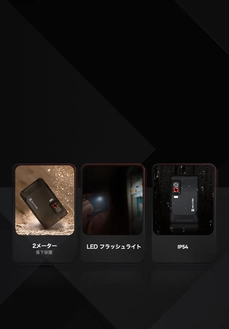 【HIKMICRO Pocketシリーズ】:サーマルカメラはオブジェクトに直接接触する近く、赤外線のエネルギー(熱)を感知して画像に変換する非接触装置です。HIKIMICRO Pocket 2は256×192のIR解像度と熱感< -20℃から400℃の広い温度測定範囲は、建物の検査、冷暖房空調設備、電気および機械設備の設備に最適です。